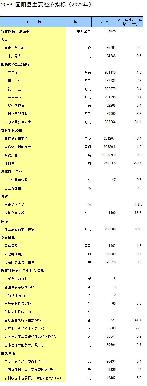 20-9 固阳县主要经济指标(2022年)
