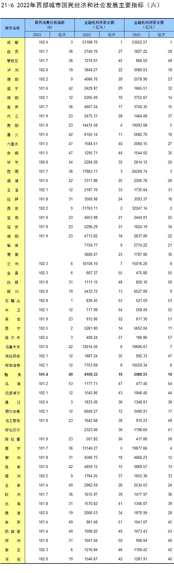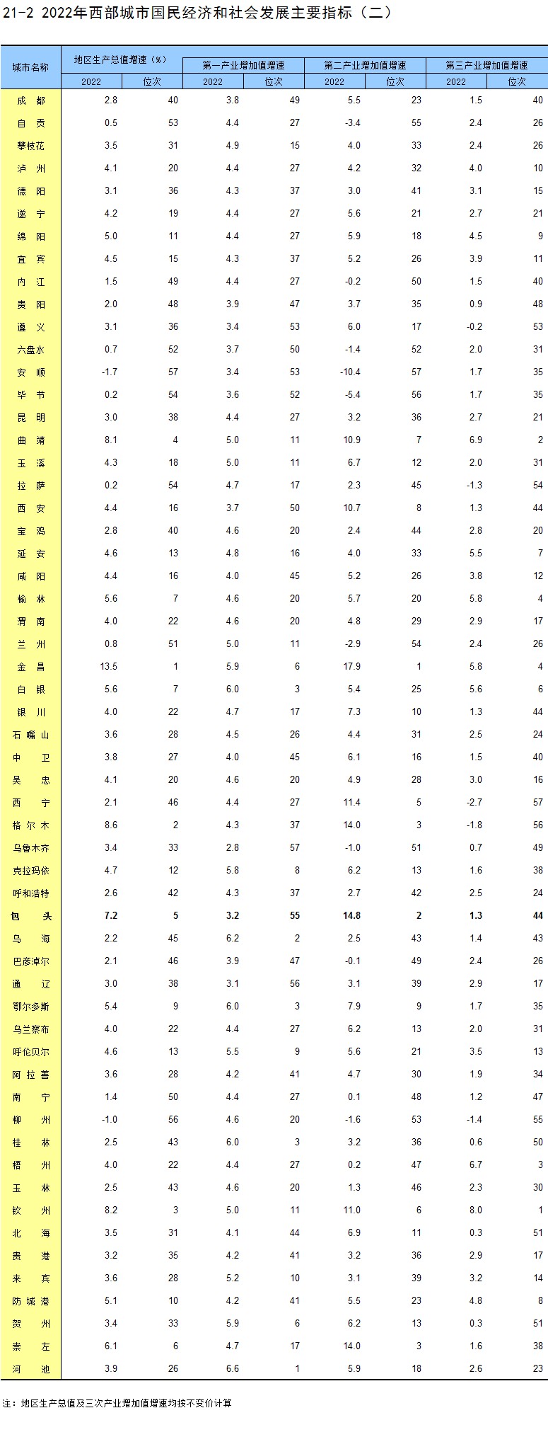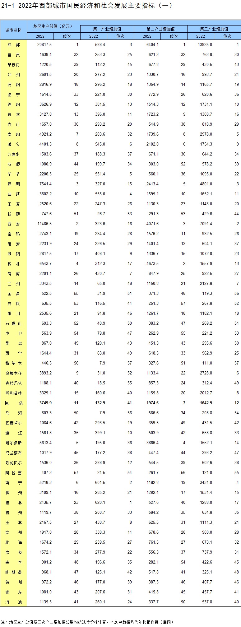 21-1 2022年西部城市国民经济和社会发展主要指标(一)