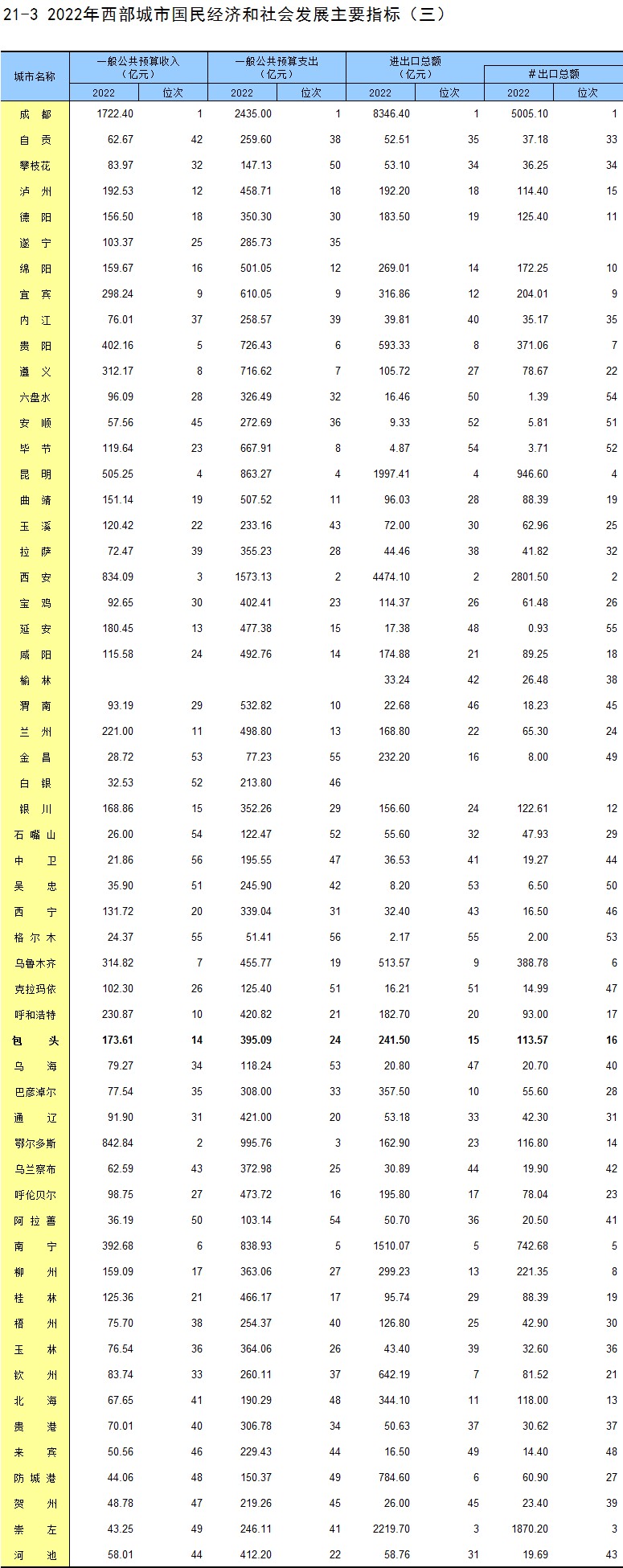 21-3 2022年西部城市国民经济和社会发展主要指标(三)