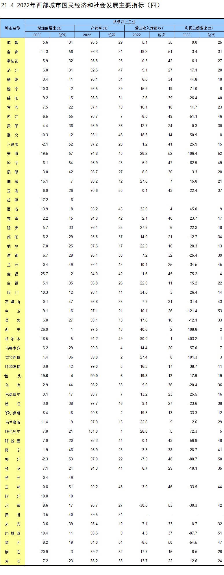 21-4 2022年西部城市国民经济和社会发展主要指标(四)