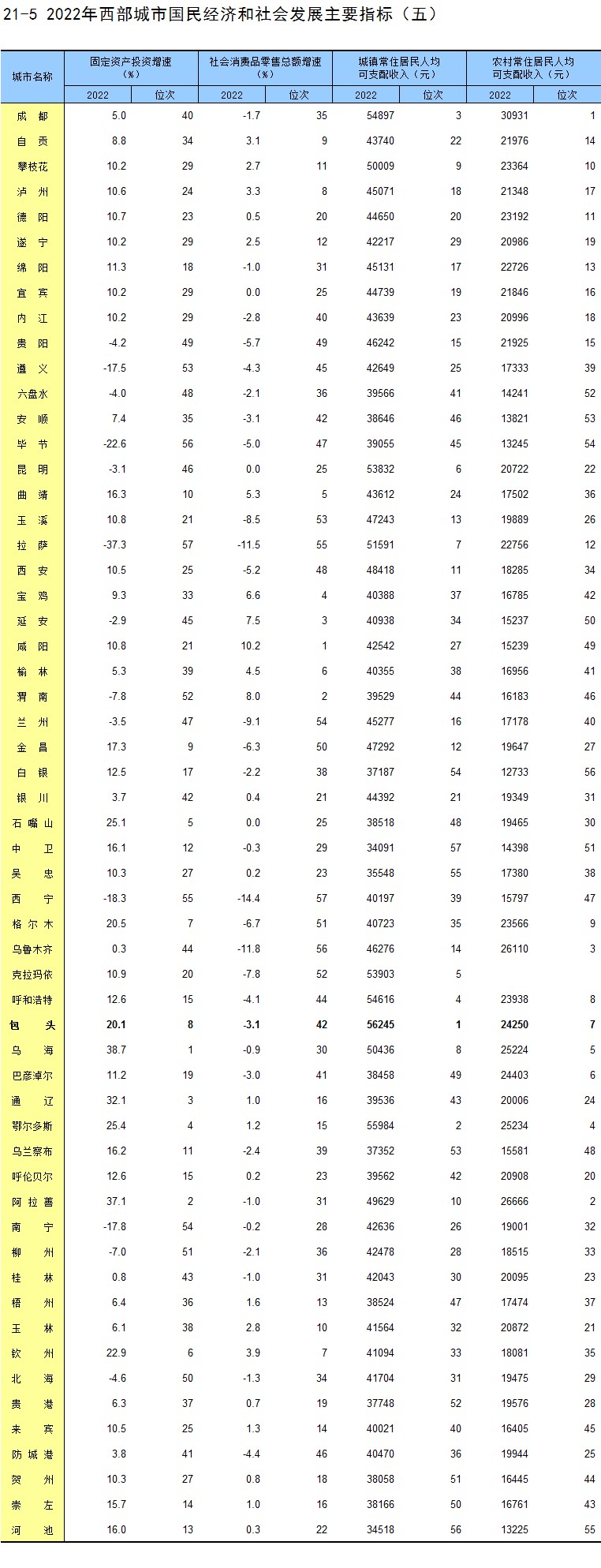 21-5 2022年西部城市国民经济和社会发展主要指标(五)