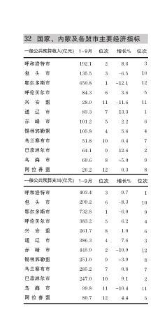 32 国家、内蒙及各盟市主要经济指标