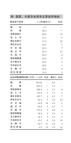 社会消费品零售总额(亿元) 1-2月 位次 增长% 位次
