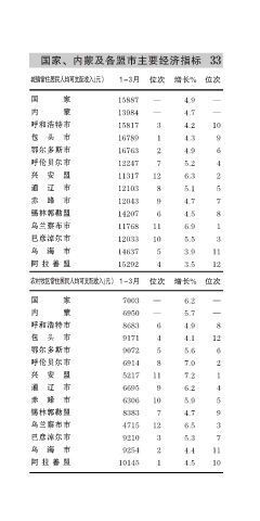 农村牧区常住居民人均可支配收入(元) 1-3月 位次 增长% 位次