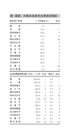 30 国家、内蒙及各盟市主要经济指标