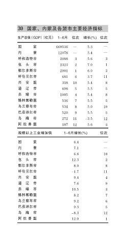 30 国家、内蒙及各盟市主要经济指标