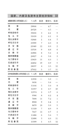 农村牧区常住居民人均可支配收入(元) 1-6月 位次 增长% 位次
