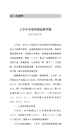 上 半 年 , 全 市 规 模 以 上 工 业 增 加 值 同 比 增 长