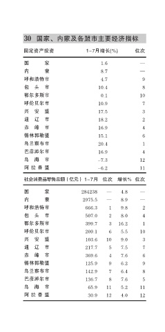 30 国家、内蒙及各盟市主要经济指标