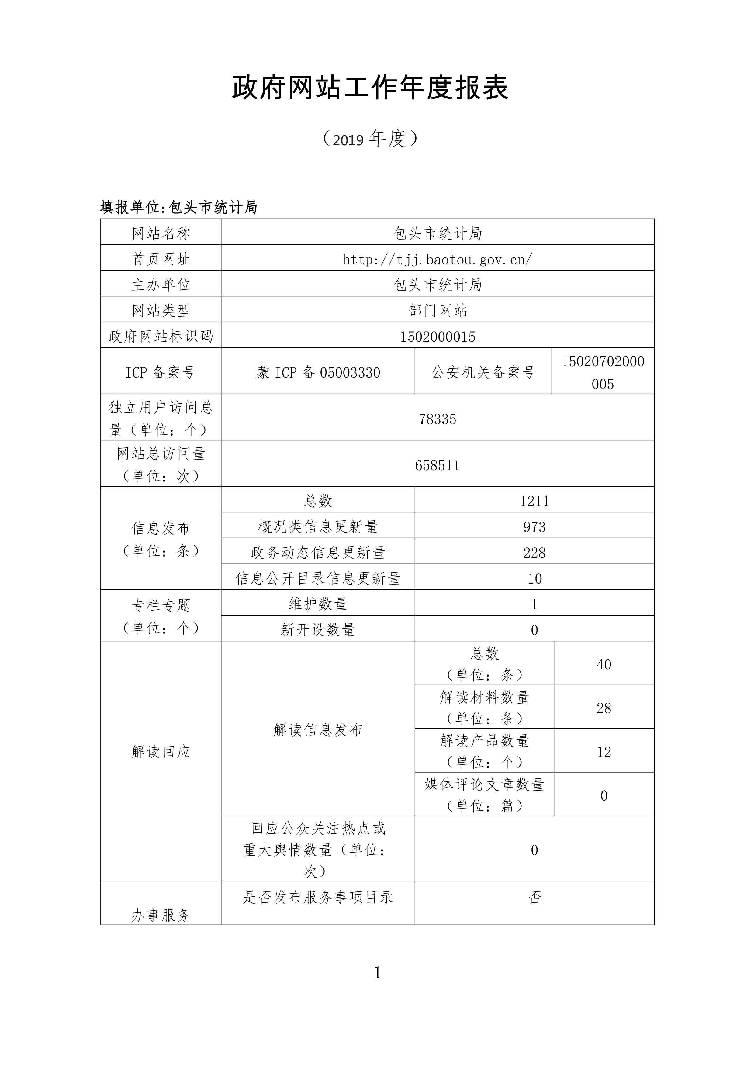 包头市统计局2019年网站工作年度报表